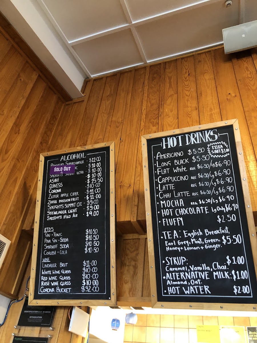 The bar features a fantastic selection of drinks, from refreshing craft beers like Speights, to elegant wines like Lindauer Brut. Whether you're in the mood for a cold Zeffer Apple Cider or a Pink Gin + Soda, there’s something to quench your thirst.